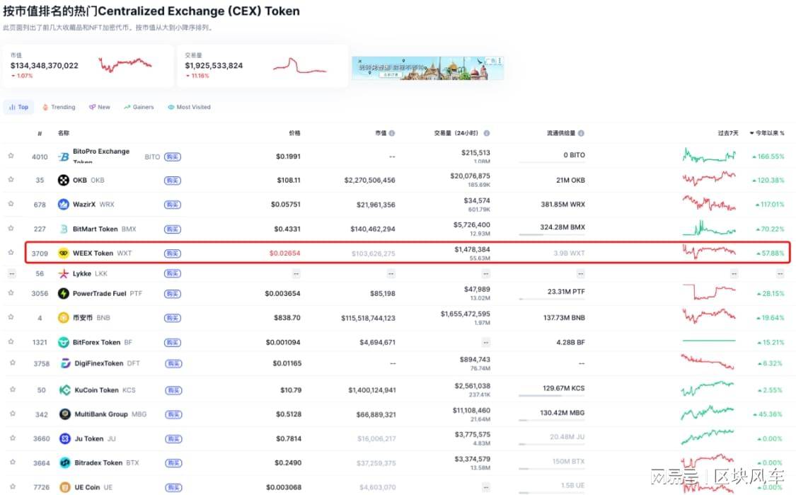 据 CMC 数据显示,截至 12 月 24 日,WXT 在 2025 年内涨幅为 57.88%,涨幅在 CMC 统计的 53 种有可比数据的 CEX 平台币中排名第 5,这一表现不仅优于 BNB 等 90% 的平台币,更在同期 BTC 下跌 6.75% 的市场环境下展现出强劲的韧性。